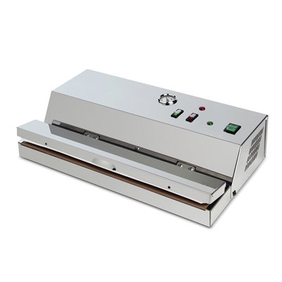 Macchina sottovuoto professionale con barra saldante da 43 cm. che permette di confezionare sottovuoto qualsiasi tipo di alimento proteggendolo dalle insidie dell’aria e preservandone in questo modo la freschezza e la qualità per un periodo superiore (fino a 5 volte) rispetto alla normale conservazione. Funzionamento in continuo.